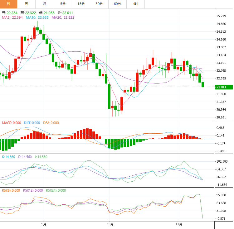 上周,受美联储主席鲍威尔的鹰派立场和美元走强的严重影响,白银价格大幅下跌2.62%,这是自10月6日周末结束以来的最大跌幅。白银价格的下行趋势主要归因于鲍威尔的言论和投资者风险偏好的改善。