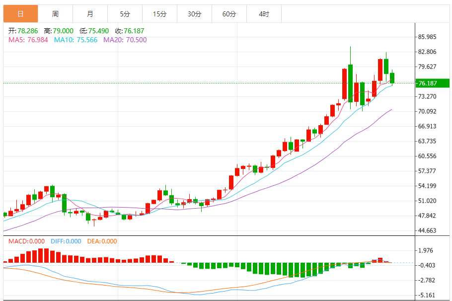 周四(1月8日),现货白银目前位于76.183美元/盎司附近,跌幅为2.53%。
