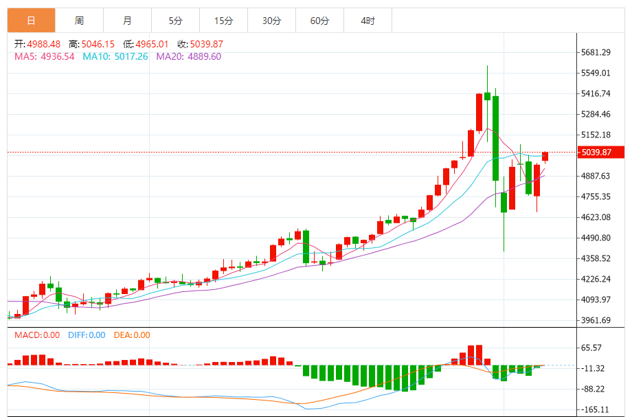 预期交易区间:在4800美元支撑和5100美元阻力之间。