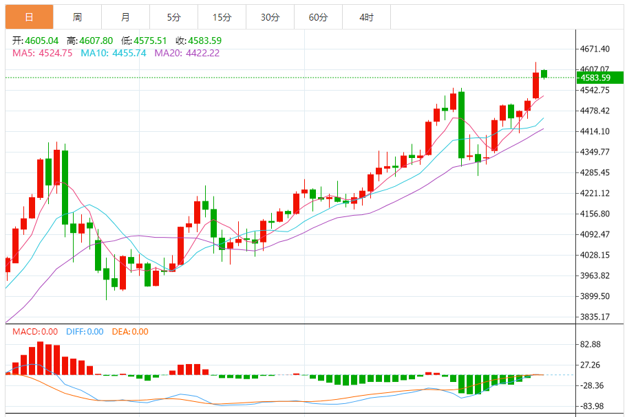 汇通财经APP讯——周一(1月12日)亚市时段,现货黄金震荡上涨,延续了前两个交易日涨势,一度触及4600.89美元/盎司的历史新高,日内涨幅约1.6%,现交投于4580美元/盎司附近。因地缘政治紧张局势加剧及市场对美国降息的预期,避险需求激增。弱于预期的美国就业报告进一步提振了贵金属的涨势。据部分报道,特朗普总统正考虑在伊朗平民游行后采取军事行动。与此同时,英国和德国计划增加在格陵兰岛的军事存在,这加剧了北极地区的紧张局势。这些事态发展给全球带来了不确定性,强化了黄金在危机时期作为传统避险资产的角色。另一方面,白银价格也受到相同组合的宏观风险和鸽派预期的支撑。然而,白银确实存在工业需求,这为其提供了另一层支撑。近期的回调幅度较浅,表明看涨兴趣仍在持续。随着黄金创下新高,白银价格也创下每盎司83.97美元的新高,如今看来,100美元左右的心理目标可能已不再遥远。周一亚市时段,白银震荡上行,日内涨幅约4.6%。市场目前正等待将于周二公布的美国CPI通胀报告,该数据可能会为美联储的降息路径提供佐证。若通胀数据走软,可能会为黄金和白银的涨势增添更多动力。黄金现货黄金的日线图显示,价格在突破高位后在4270美元处获得了良好支撑,目前走势强劲。从4270美元的反弹走势具有建设性,预示着未来几天价格很可能将继续走高。目前的价格走势正在完成一个新的上升扩散楔形形态,该形态暗示2026年价格或将升