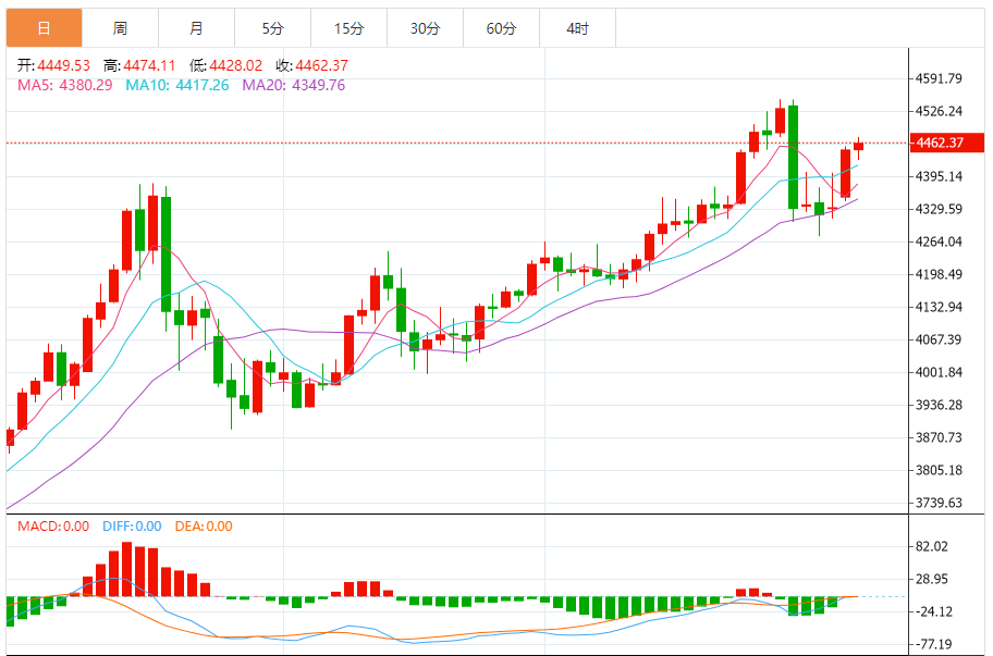 基本消息面 周二(1月6日)纽约尾盘,现货黄金涨1.07%,报4497.01美元/盎司,北京时间09:03刷新日低至4427.98美元,随后逐步上涨。COX黄金期货涨1.21%,报4505.50美元/盎司。 相关新闻消息 共和党大动员特朗普警告若输掉中期选举他将再次面临弹劾 美国总统特朗普敦促共和党人在11月中期选