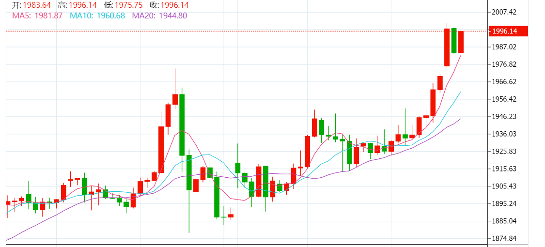 今日金价交投将位于支撑位1970.00美元/盎司以及阻力位2010.00美元/盎司之间。