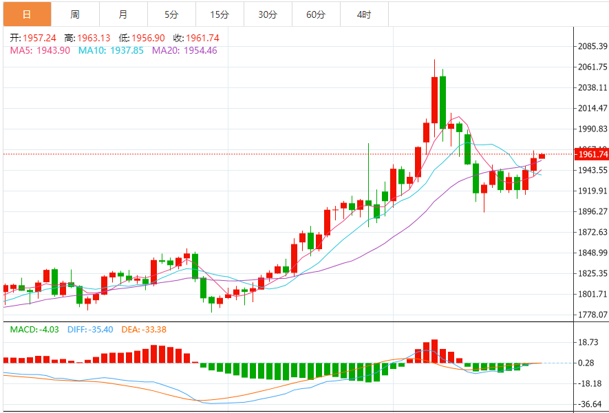 预计今日金价交投将位于支撑位1940.00美元/盎司以及阻力位1985.00美元/盎司之间。
