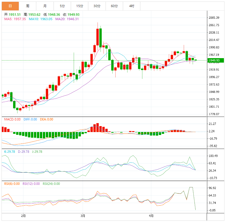 黄金昨日先抑后扬,日线收成小阳K线,最低下探1936一线启稳,盘中由于美元高位下挫,以及对通胀和乌克兰战争导致经济增长放缓的担忧。提振黄金短线反弹收高,而技术结构上此前一个交易日快速下挫后,指标并未完全拐头,隔日只要一停顿。就会陷入震荡,短期依旧单边动能不足,加之消息面的不定性,而美元短期多空转换频繁,也将侧面影响到黄金的短线方向。短线伴随着反复拉锯。4小时连阴下探后伴随三连阳的反弹修正。由于昨日下跌持续性不强,今日仍是多空延续之关键,均线指标依旧未拐头向下,若是昨日延续弱势下挫,今日指标向下,就会表现弱势下行,而昨日走出反弹。使得日内短线继续回归拉锯震荡。