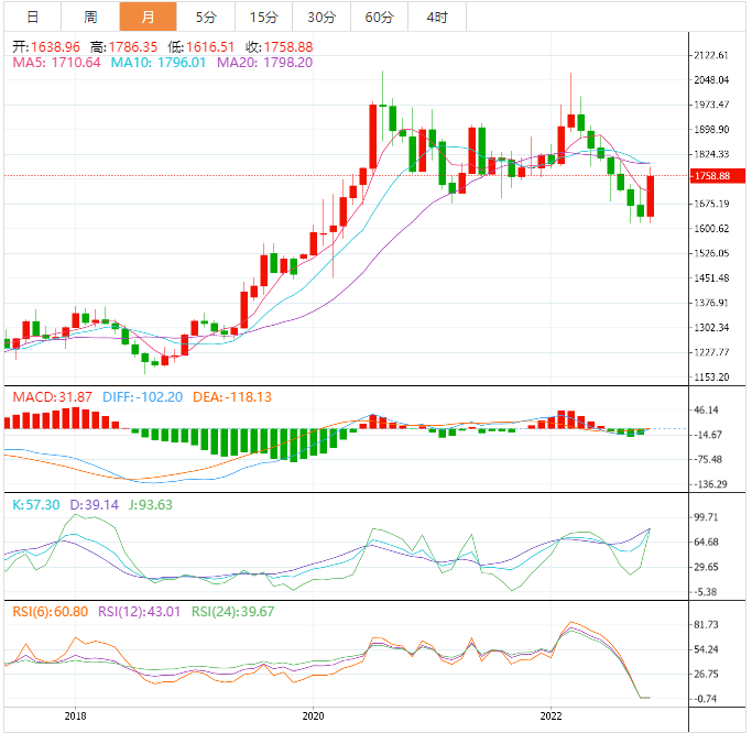 英国研究公司Metals Focus的分析师在其2023年金价预测中说,他们预计明年黄金均价将下跌10%,在第四季度触底,达到每盎司1500美元左右的四年低点。
