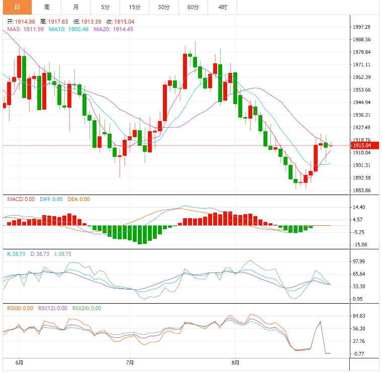 金价在守住1,900.00美元的关键支撑位后盘整在1,915.00美元附近,因投资者消化了鲍威尔在杰克逊霍尔研讨会上发表的鹰派言论。