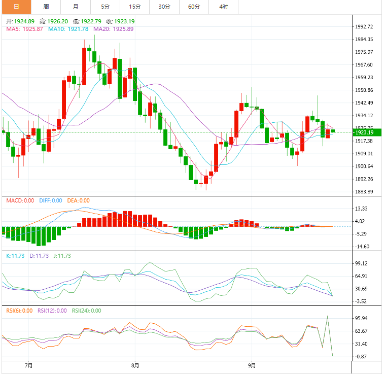 技术面上,金价将继续横盘在1913-1948美元区间内,大多数日移动均线(dma)在当前汇率附近徘徊。然而,由于金价仍低于200日移动均线1926.24美元,阻力最小的路径倾向于下行。首个支撑位将是9月21日的低点1913.99美元,随后是9月14日1901.11美元的波动低点。相反,如果黄金突破100日移动均线1941.86美元,预计将挑战1950美元大关。
