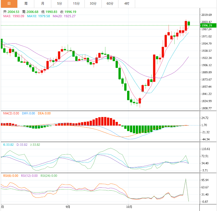 金价从近2,010.00美元的五个月高位小幅回落,因投资者等待美国联邦储备理事会周三宣布的货币政策决定。