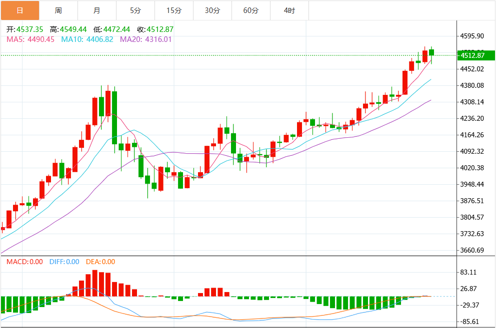 需要关注的直接阻力位是布林带的上边界4520美元。 若果断突破该水平,可能会触发对历史高点4550美元的重新测试,并朝向4600美元的心理关口。