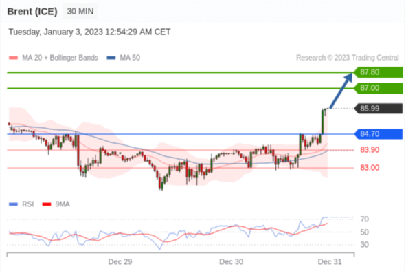 交易策略: 在 84.70 之上,看涨,目标价位为 87.00 ,然后为 87.80 。