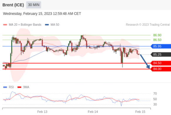 交易策略: 在 85.95 之下,看跌,目标价位为 84.50 ,然后为 84.00 。