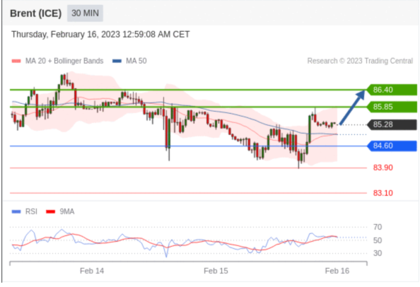 交易策略: 在 84.60 之上,看涨,目标价位为 85.85 ,然后为 86.40 。
