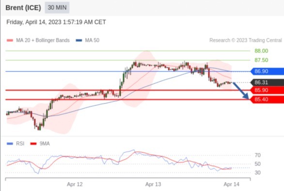 交易策略: 在 86.90 之下,看跌,目标价位为 85.90 ,然后为 85.40 。