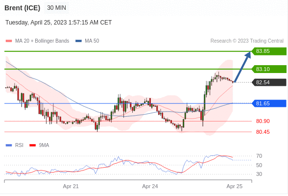 交易策略: 在 81.65 之上,看涨,目标价位为 83.10 ,然后为 83.85 。