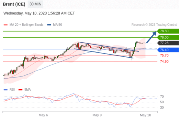 交易策略: 在 76.40 之上,看涨,目标价位为 78.00 ,然后为 78.80 。