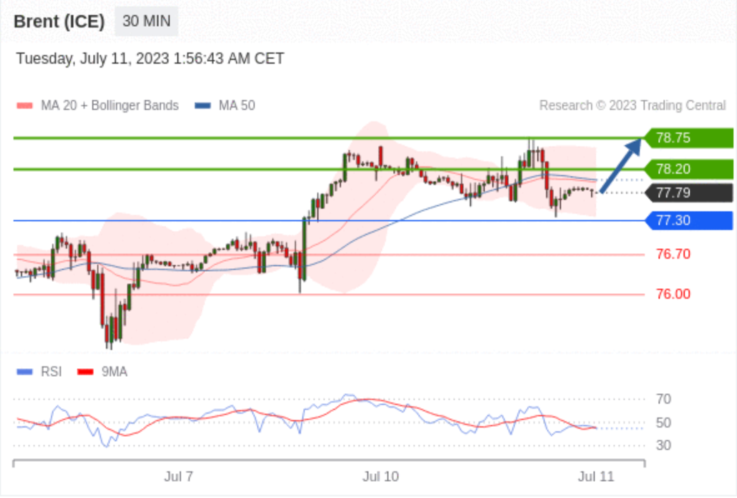 交易策略: 在 77.30 之上,看涨,目标价位为 78.20 ,然后为 78.75 。