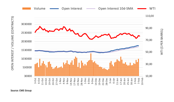 C集团的原油期货市场初步数据指出,交易商延续了未平仓合约的上升趋势,週二增加了约1.56万份合约。成交量紧随其后,上升了约1.12万份合约,部分扭转了之前的跌势。 WTI仍然关注82.60美元 周二,WTI的价格出现了良好的反弹,此前跌至76.60美元附近的3週低点后回升。反弹是在持仓量和成交量增加的情况下进行的,至少在
