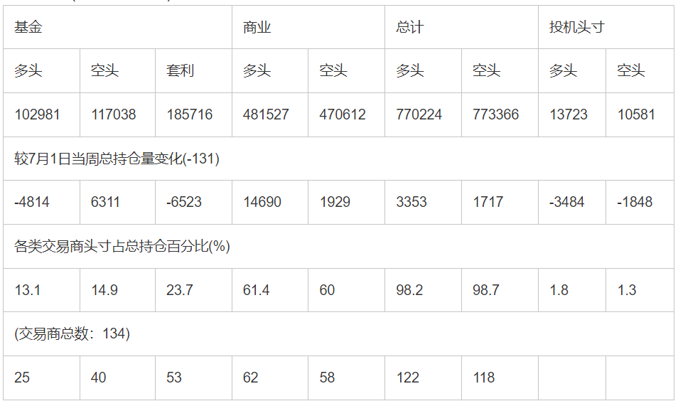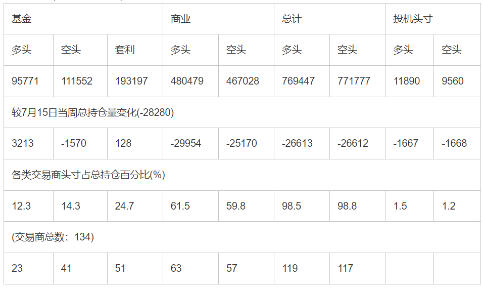 截止7月22日当周洲际交易所(欧洲)原油期货分类持仓报告: 合约单位:(1000桶的合同)总持仓量:781337