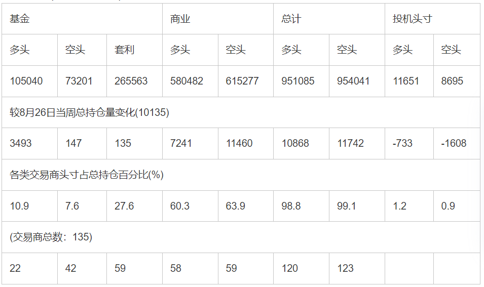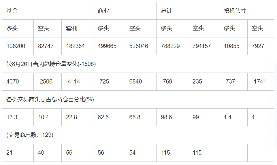 截止9月2日当周洲际交易所(欧洲)原油期货和期权分类持仓报告: 合约单位:(1000桶的合同)总持仓量:962736