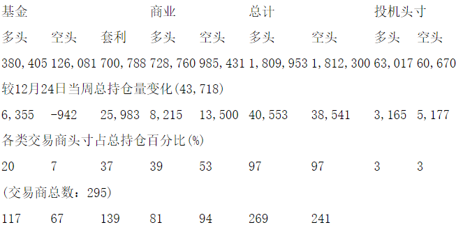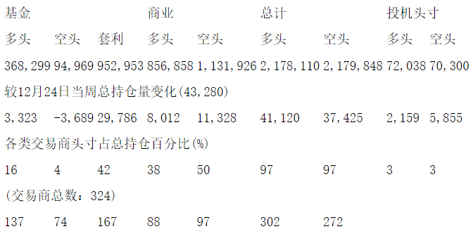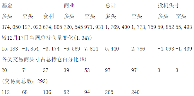 美国商品期货交易委员会(CFTC)最新公布截止12月24日当周NYX原油期货分类持仓报告: 合约单位:1000桶总持仓量:1829252