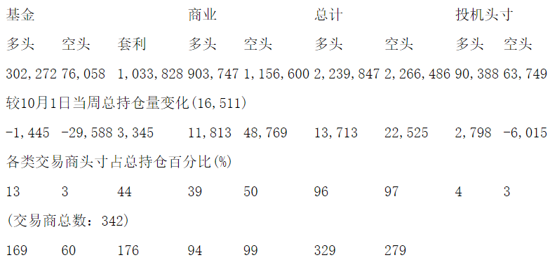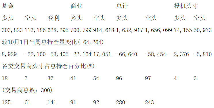 美国商品期货交易委员会(CFTC)最新公布截止10月8日当周NYX原油期货分类持仓报告: 合约单位:1000桶总持仓量:1707072