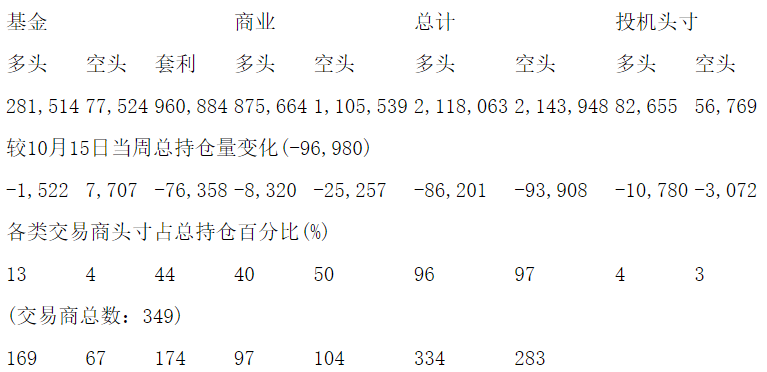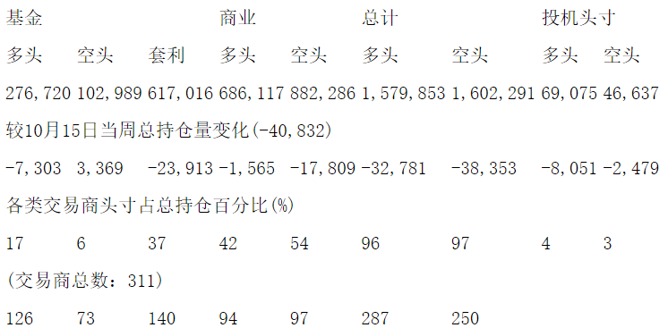 美国商品期货交易委员会(CFTC)最新公布截止10月22日当周NYX原油期货分类持仓报告: 合约单位:1000桶总持仓量:1648928