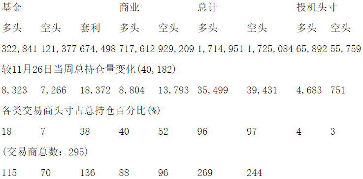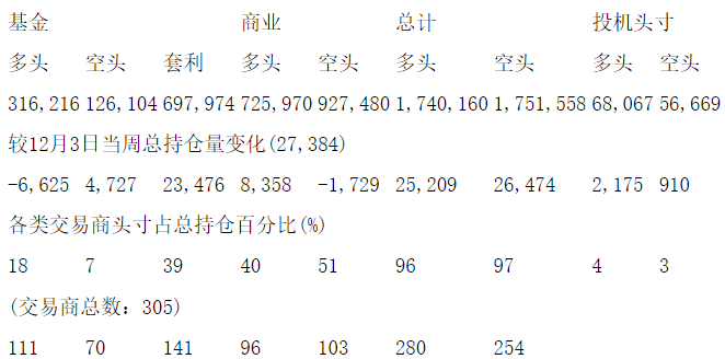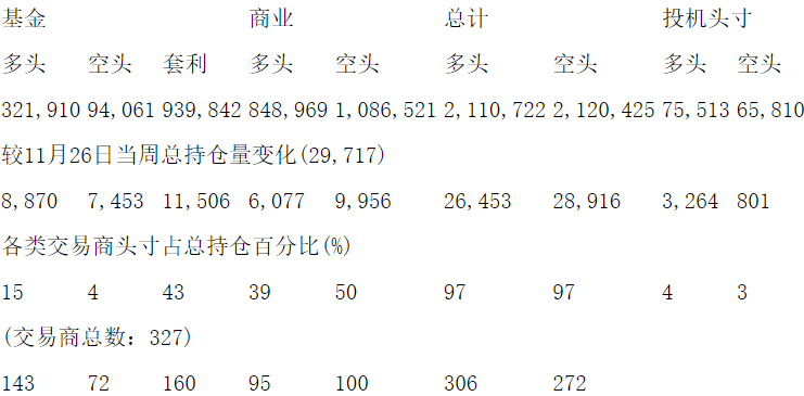美国商品期货交易委员会(CFTC)最新公布截止12月3日当周NYX原油期货分类持仓报告: 合约单位:1000桶总持仓量:1780843