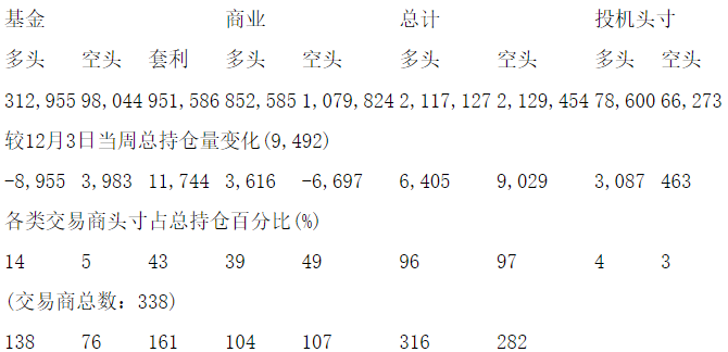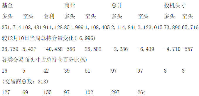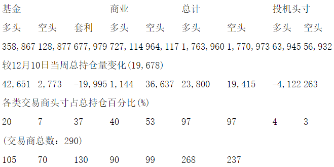 美国商品期货交易委员会(CFTC)最新公布截止12月10日当周NYX原油期货和期权分类持仓报告: 合约单位:1000桶总持仓量:2195727