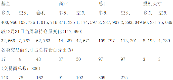 美国商品期货交易委员会(CFTC)最新公布截止12月31日当周NYX原油期货和期权分类持仓报告: 合约单位:1000桶总持仓量:2250148