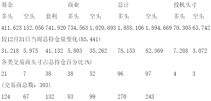 美国商品期货交易委员会(CFTC)最新公布截止12月31日当周NYX原油期货分类持仓报告: 合约单位:1000桶总持仓量:1872970