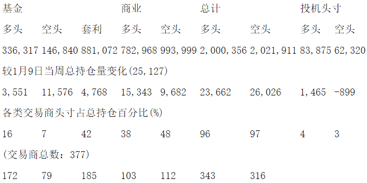美国商品期货交易委员会(CFTC)最新公布截止1月16日当周NYX原油期货和期权分类持仓报告: 合约单位:1000桶总持仓量:2084231