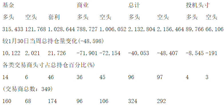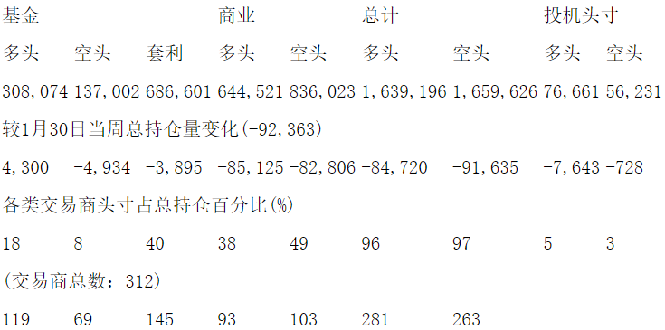 美国商品期货交易委员会(CFTC)最新公布截止2月13日当周NYX原油期货和期权分类持仓报告: 合约单位:1000桶总持仓量:2222570