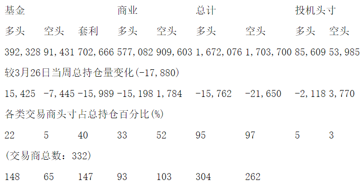 美国商品期货交易委员会(CFTC)最新公布截止4月2日当周NYX原油期货分类持仓报告: 合约单位:1000桶总持仓量:1757685