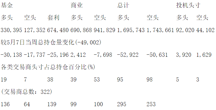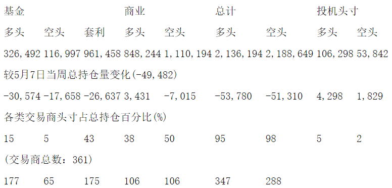 美国商品期货交易委员会(CFTC)最新公布截止5月14日当周NYX原油期货分类持仓报告: 合约单位:1000桶总持仓量:1787763