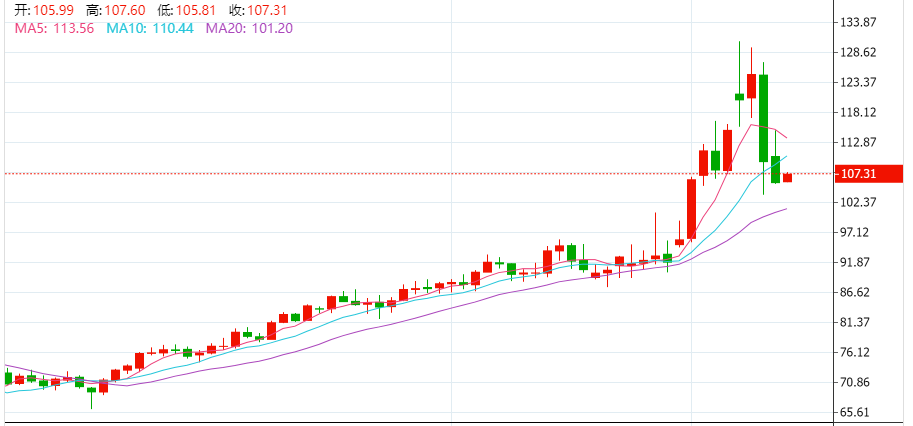 另一方面,若日内收盘于10日EMA均线106.45美元书否,将指引多头指向23.6%斐波回档位111.40美元。之后,120美元的整数关口和最新的数月高点126.50美元将吸引多头。