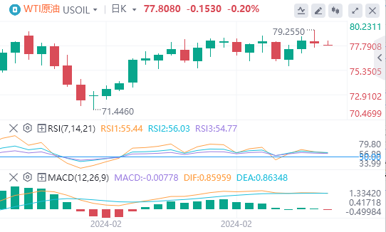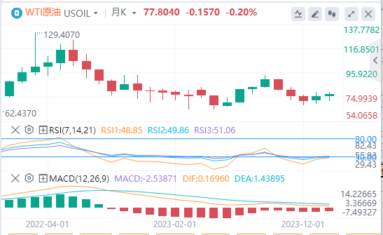 在2月份,原油市场经历了显著的价格波动。月初,受到全球经济复苏预期和主要产油国供应减少的影响,原油价格呈现上涨趋势。然而,随着中旬的到来,地缘政治紧张局势加剧以及市场对需求复苏的担忧逐渐显现,价格出现回调。至月末,原油市场因多重因素交织影响,价格呈现出震荡整理的态势。截至发稿,WTI原油报价77.80,当月上涨2.73%