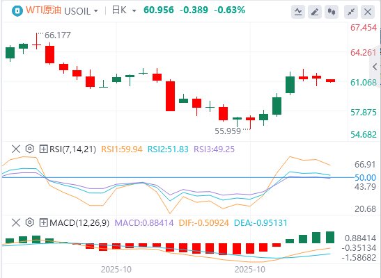 由于石油输出国组织及其盟国(OPEC+)预计将再次增加12月的石油产量,WTI价格走低。截至目前,WTI原油报价60.95美元,Brent原油报价64.73美元。