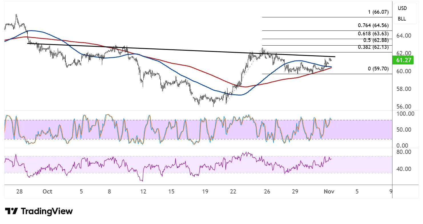 然而,在恢复攀升之前,价格仍可能回落至59.70-60.00美元左右的颈线或感兴趣区域。该区域与阵型的右肩重合,可以作为下一站走高的发射台。