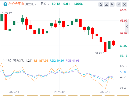 在上一交易日,由于俄乌和平谈判取得进展,WTI原油一度收于近五年低点。市场当时预期和平协议可能促使西方放宽对莫斯科的制裁,从而释放供应,尽管全球需求依然脆弱。然而,特朗普周二下令封锁所有进出委内瑞拉的受制裁油轮,并补充称,他目前将该国当局视为“外国恐怖组织”。目前尚不清楚将有多少油轮受到影响,也不清楚美国将如何具体实施封锁,以及特朗普是否会像上周那样指示海岸警卫队拦截船只。近几个月来,美国已向该地区部署了军舰。