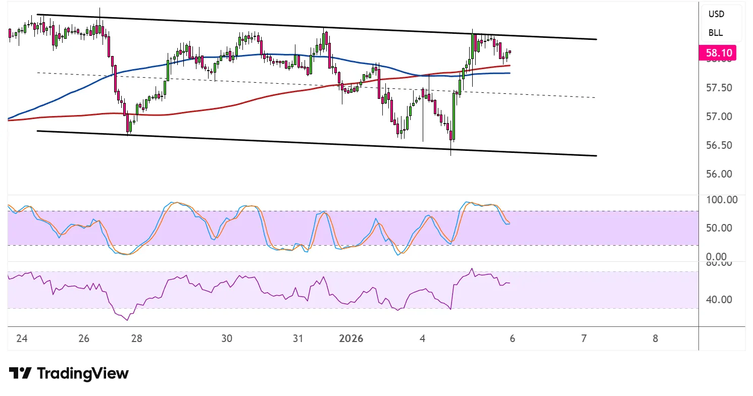然而,如果原油成功突破下行通道阻力并收盘于移动平均线之上,这将使看跌的布局失效,可能预示情绪转变。在这种情况下,WTI可能会将目标锁定在58.50-59美元或更高区间。