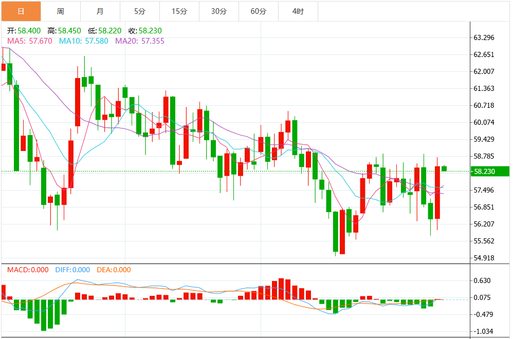 MACD绿柱持续缩短,快慢线存在低位金叉的潜在迹象。整体而言,只要油价守住56.5–57美元关键支撑区间,短线仍具备向上测试60美元整数关口的技术条件,但61–62美元区域仍将构成阶段性压力带。