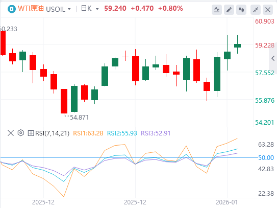 随着伊朗局势紧张加剧油价市场的担忧,WTI价格大幅上涨。交易员们正准备迎接美国石油协会(API)周二公布的原油库存报告。截至目前,WTI原油报价59.24美元,Brent原油报价63.63美元。