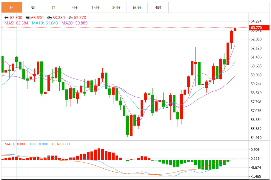 周四,美原油延续上涨,交投于63.76美元/桶附近,近期国际原油价格显著走强,WTI原油一度升至四个月高点,核心驱动来自地缘局势再度紧张。