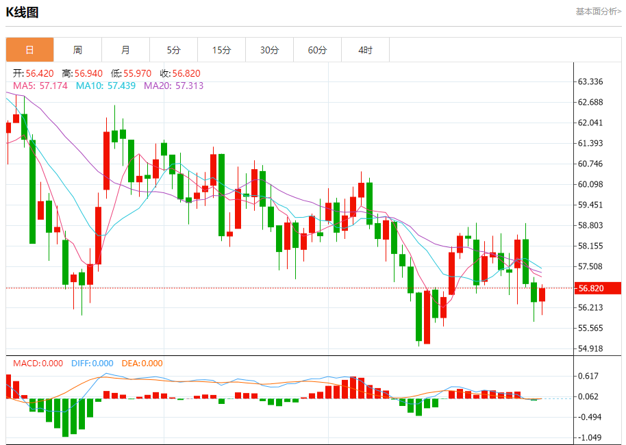 周三盘中,WTI原油报57.040,跌幅0.16%。 今日分析:在57.10之下,看跌,目标价位为55.75,然后为55.35。 技术点评:即使我们不能排除持续技术反弹的可能性,其时间长度上,应该是有限的。 支撑位:55.7555.3555.00 阻力位:58.3057.7557.10 (亚汇网编辑:冰凡)