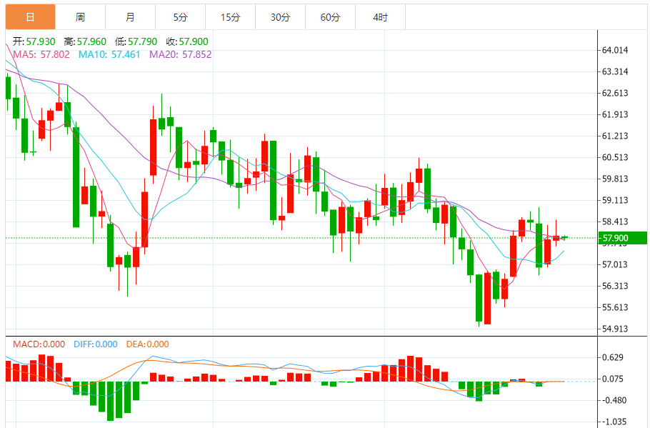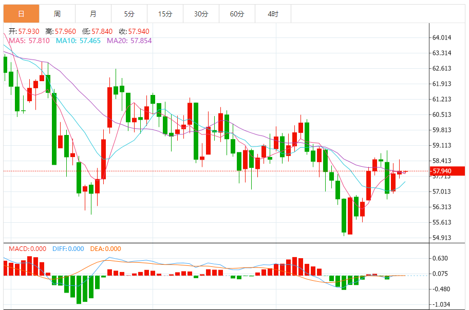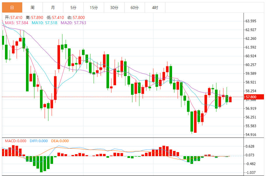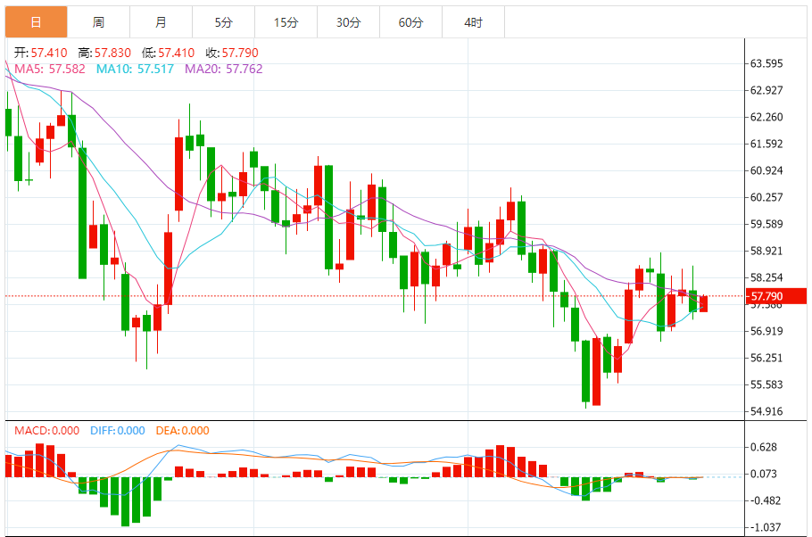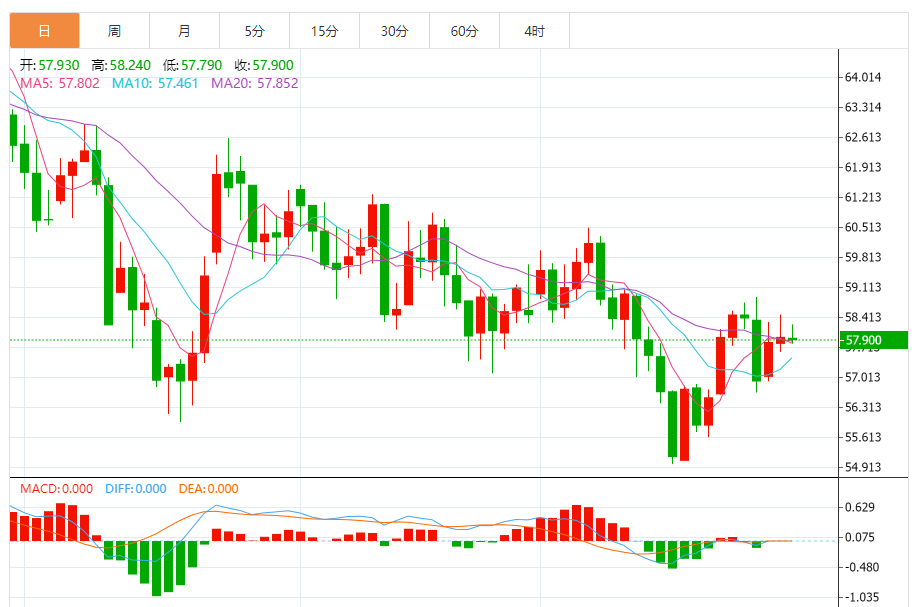 周三盘中,WTI原油报58.110,涨幅0.28%。 今日分析:在57.75之上,看涨,目标价位为58.45,然后为58.90。 技术点评:RI技术指标呈现进一步上升趋势。 支撑位:57.7557.5057.05 阻力位:59.5058.9058.45 (亚汇网编辑:冰凡)