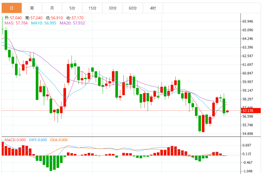 周一(12月29日),美原油价格交投于57.350美元/桶附近,涨幅为1.08%。 原油在最近的盘中交易中上涨,此前在之前的交易中经历了一波大幅亏损,依靠其A50的支撑,这提供了看涨的动力,帮助其录得暂时的收益,并试图挽回近期的部分损失。 这种改善伴随着测试短期基础上的看涨修正趋势线,除了在相对强度指标