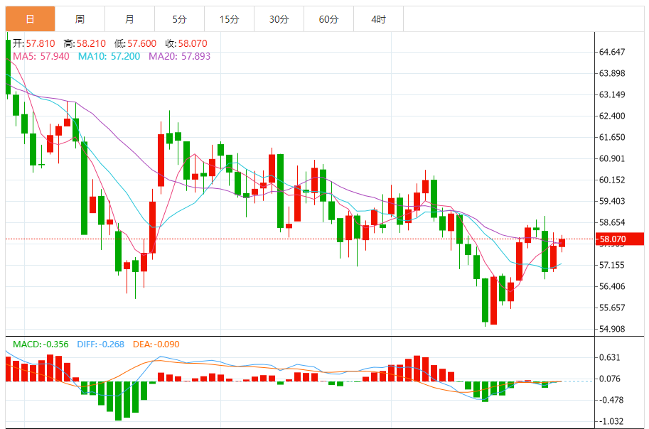 基本消息面 周二,美国原油基准——西德克萨斯中质原油(WTI)运行在每桶57.91美元附近,价格在低位区间内震荡偏强。 相关新闻消息 地缘政治风险再度成为主导油价波动的关键变量,投资者在等待美国石油协会(AI)原油库存报告的同时,整体操作趋于谨慎。近期俄乌局势出现新的不确定信号。
