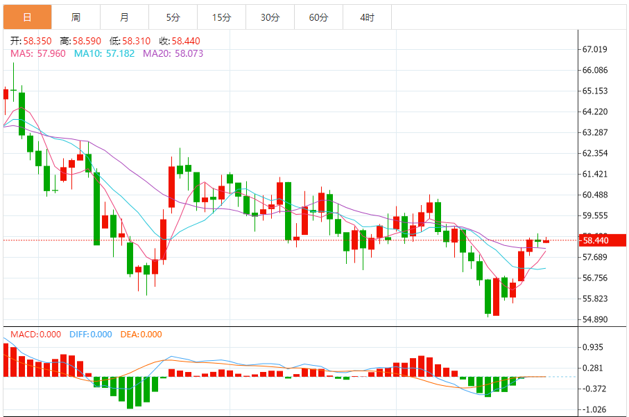 周二盘中,WTI原油报58.340,涨幅0.45%。 今日分析:在57.75之上,看涨,目标价位为58.60,然后为58.90。 技术点评:RI技术指标看涨,有进一步上升空间。 支撑位:57.7557.5057.05 阻力位:59.1058.9058.60 (亚汇网编辑:冰凡)