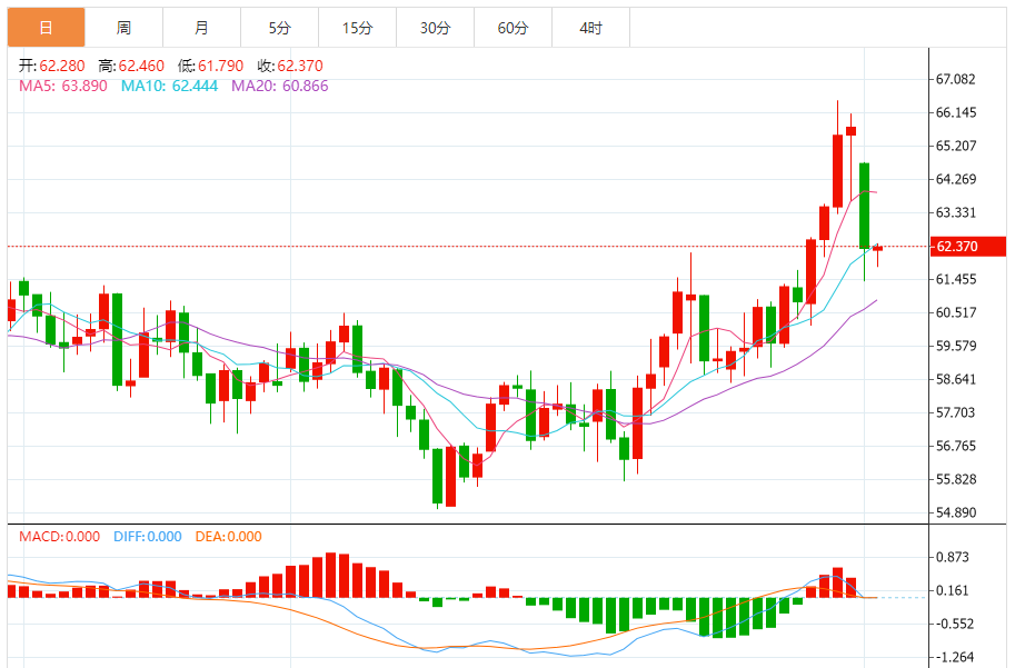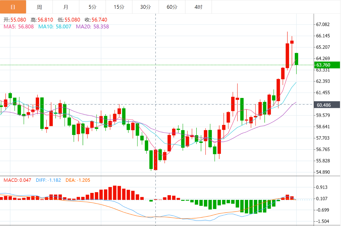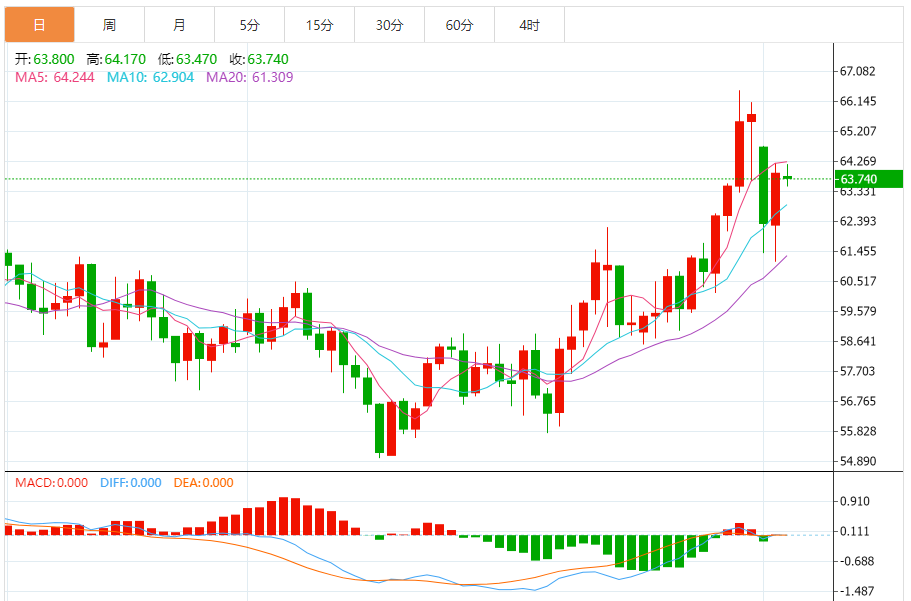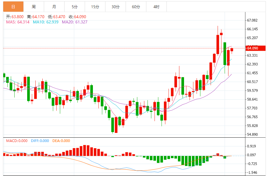 2月4日,周三亚市盘中,原油交易价格约为63.75美元。由于担心美伊紧张局势加剧,WTI价格略微上涨。交易员们正准备迎接周三发布的美国能源信息署(IA)原油库存报告。 CNBC周二报道,美军击落了一架伊朗无人机,该无人机“积极”接近阿拉伯海的亚伯拉罕·林肯号航空母舰。此事件发生在中东局势紧张之际,美国总统唐纳德