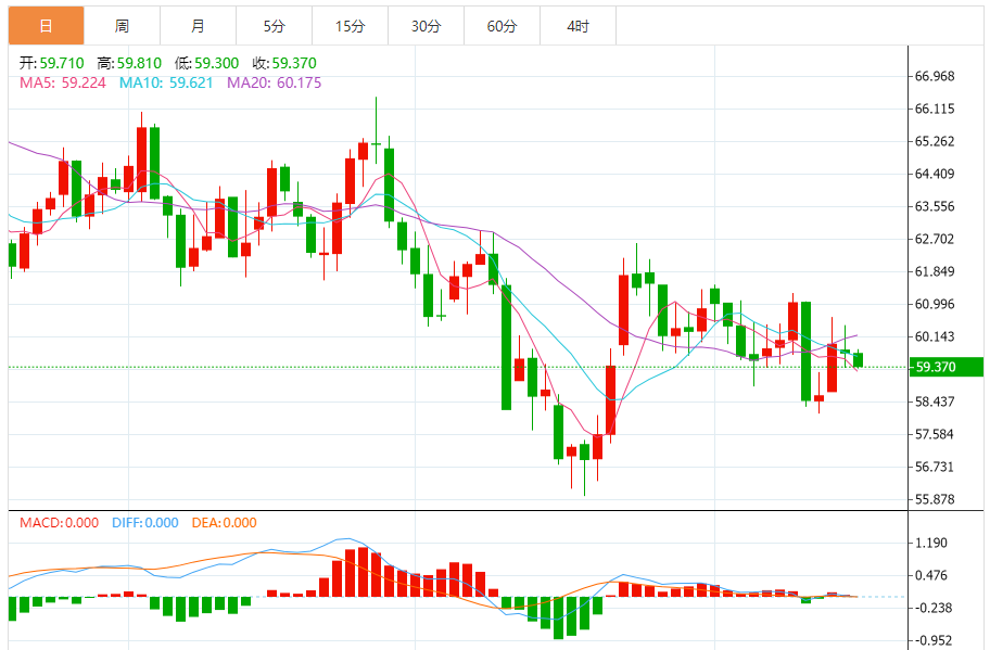 基本消息面 美原油周四小幅震荡,交投于59.45美元/桶附近,短期的下跌反映市场在多重因素作用下出现明显抛压。影响行情的首要因素来自美元指数强势反弹,美元升至两周高点削弱以美元计价的大宗商品吸引力,使多头情绪受到压制。 与此同时,外部局势出现新的缓和信号,市场对能源风险溢价的预期随之下降,